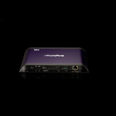 BrightSignOS enabled media player. Single UHD video decode. USB-A, GPIO, 3.5mm Serial, 3.5mm IR IO, and Analog/SPDIF Audio output. microSD storage options. WiFi and Cellular connectivity options