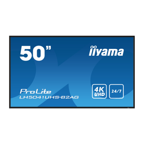 50″ 3840×2160, 4K UHD VA panel, 25% Haze, Landscape and Portrait mode, Speakers 2x 10W , VGA, 3x HDMI, 500cd/m², Media Play USB Port, Control LAN / RS232C, VESA 400×400